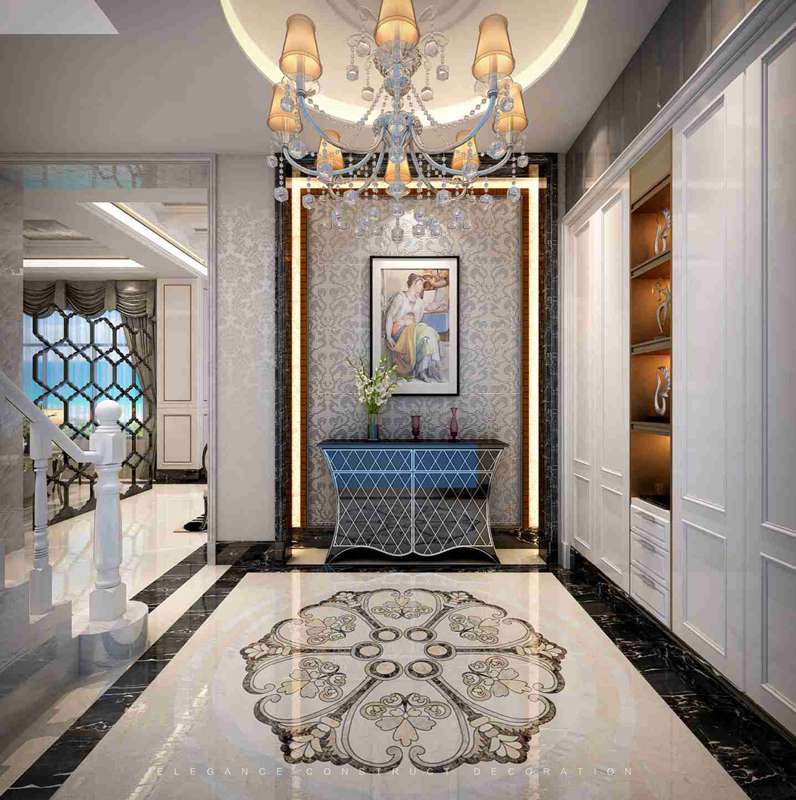 進門入戶玄關位置,整個地面的造型及玄關墻賦予了文化的生命力。
