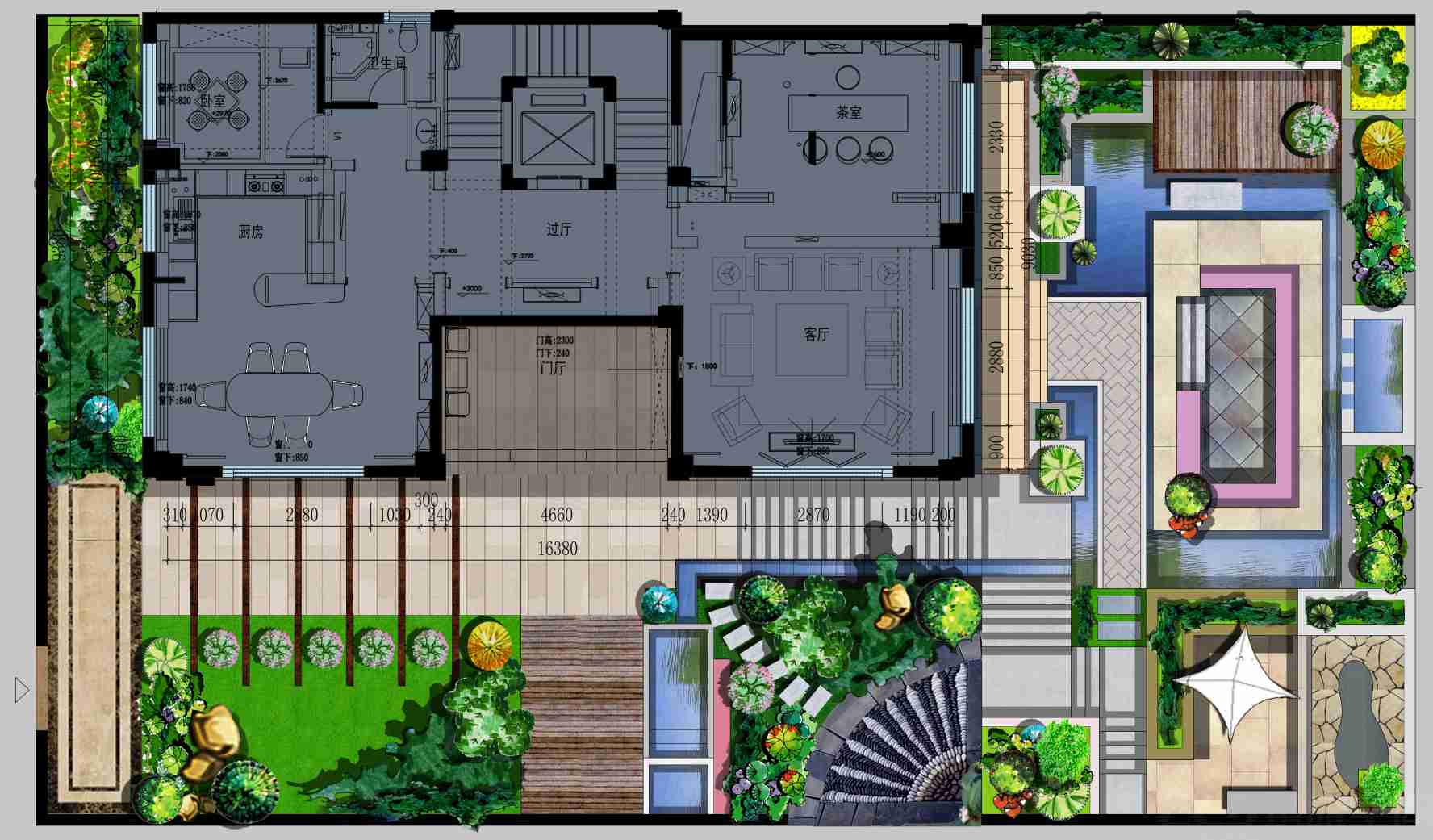 我們可以看到,書房的左邊原來是天井,把窗改成如意造型窗,可以透過井看到外面,進(jìn)而看到海。主人當(dāng)中而坐,喝茶、看書、靜思都是一個(gè)不錯(cuò)的閑靜之地。