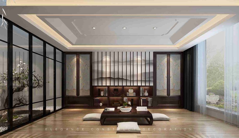“萬卷古今消永日,一窗昏曉送流年。”窗明幾凈,花鳥壁布柜、落地門窗外旱景枯木小景,讓人不由心生感慨,窗外世景幽美,窗內(nèi)靈氣儒雅,環(huán)顧周圍,中式設(shè)計(jì)雅致十足,發(fā)呆、打坐、看書,精神上的陶然之所。