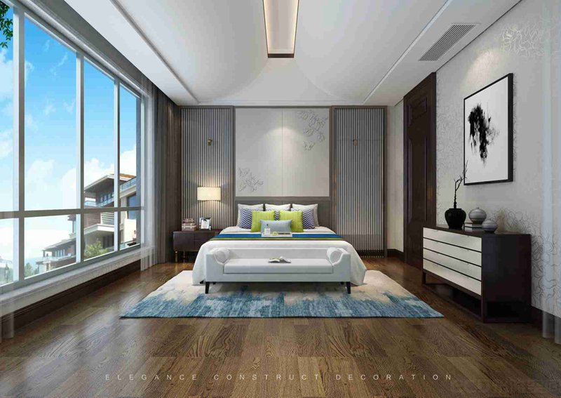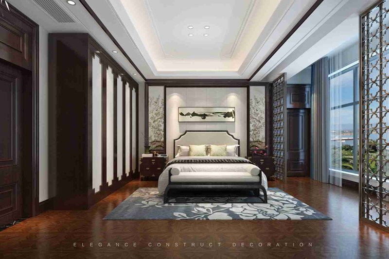 與傳統(tǒng)的書房不同,在書房的設(shè)計(jì)上,并沒有做門而是直接做了個(gè)如意弧屏風(fēng),形成一個(gè)開放式景象。這個(gè)空間不僅僅是一個(gè)書房,更多的是想營造一種意境。抬眼入目,千里江山自然風(fēng)貌的中國山水畫表現(xiàn)無限的空間感。主人環(huán)坐其中,背靠山脈上有極致栩栩如生的飛鳥,無論做生意還是當(dāng)官都會(huì)順風(fēng)順?biāo)?/span>