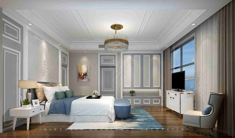 本案例戶型比較特殊,客廳三面是窗、且都能看到大海。整體設(shè)計(jì)因原本這個(gè)空間戶型有梁,空間感并不理想。為了改善這一情況,設(shè)計(jì)者通過木雕把梁化解掉,把空調(diào)藏進(jìn)去,這樣無形中起到了很好的裝飾作用,增強(qiáng)了空間的層次感與美感。