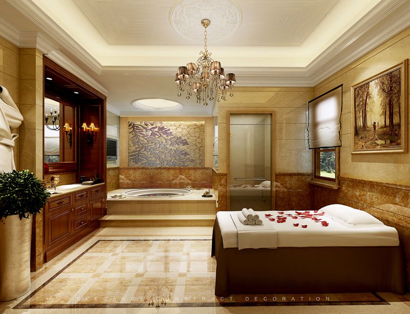 圓形的大浴缸,舒適的SPA床,米黃典雅的色彩搭配,都會讓您一天的老路,在此得到舒緩,靜享典雅的生活。