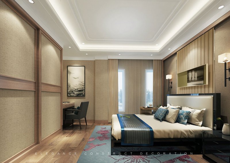 在整個設(shè)計中,室內(nèi)內(nèi)部裝飾多采用簡潔、硬朗的直線條,既迎合了中式家具追求內(nèi)斂、質(zhì)樸的設(shè)計風(fēng)格,又反映出現(xiàn)代人追求簡單生活的居住品味。中式元素的運用,使整體空間感更加豐富,大而不空、厚而不重,有格調(diào)又不顯壓抑。
