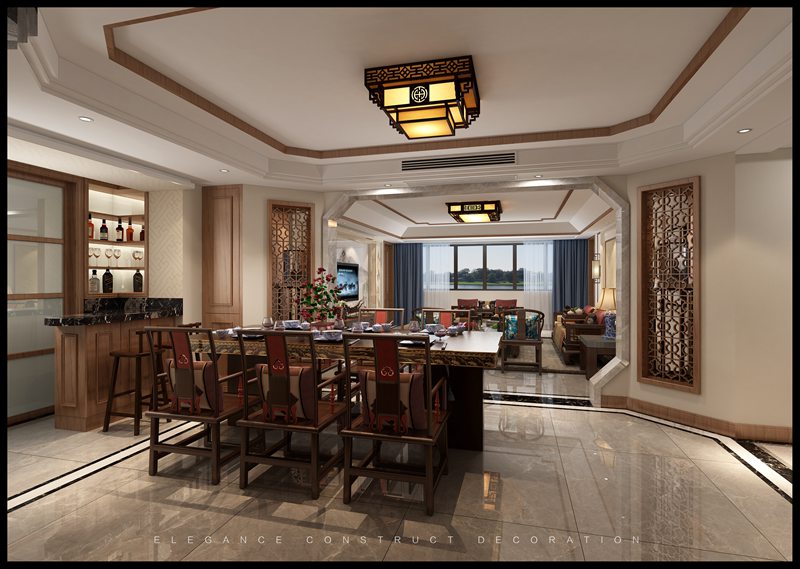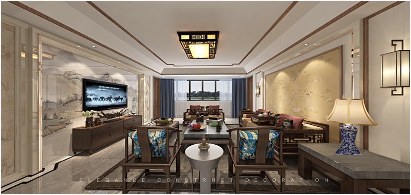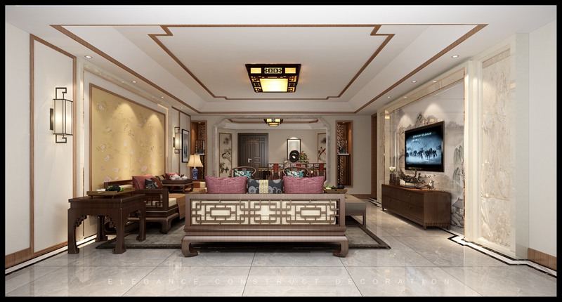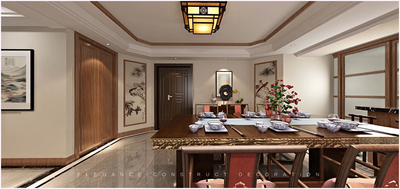 業(yè)主三口之家,風(fēng)格定義為新中式,地面是大理石瓷磚,墻面壁布,配合實(shí)木線(xiàn)條,實(shí)木雕刻,巖石雕刻等材質(zhì)。家具選用大紅酸枝材質(zhì),色澤自然,紋理清晰,典雅高貴。整體設(shè)計(jì)既保留了傳統(tǒng)中式的莊重與優(yōu)雅,又追求靈動(dòng)格調(diào)素雅,體現(xiàn)了家居主人較高的審美情趣與社會(huì)地位。