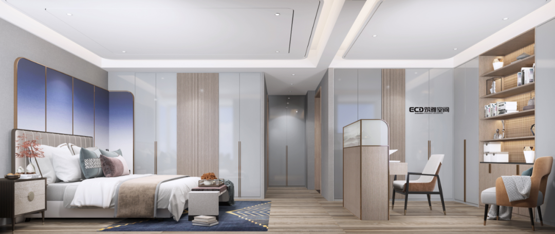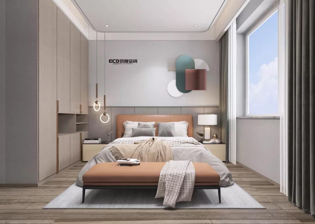 主臥以簡(jiǎn)約的手法創(chuàng)造出靈動(dòng)的平衡與輕盈感,高貴大氣中又彰顯出藝術(shù)性與品質(zhì)。
