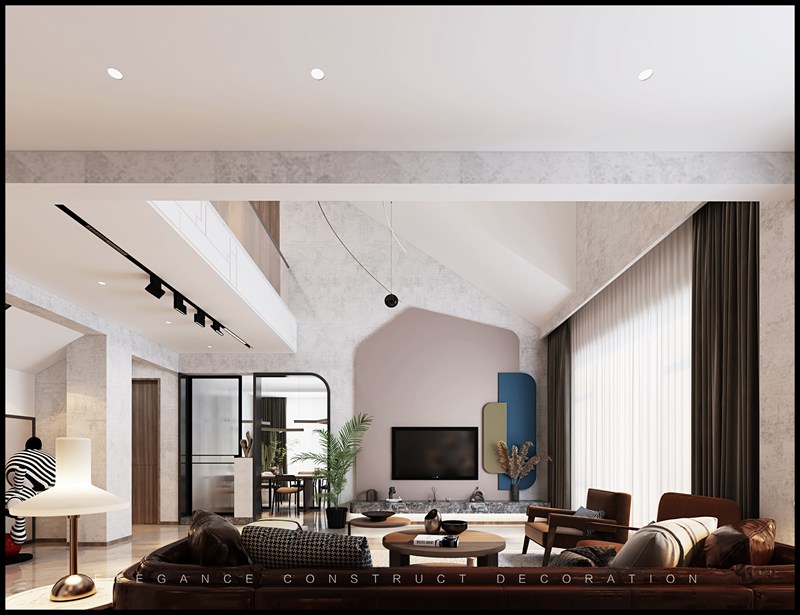 大面落地窗,順應(yīng)著自然的變化,模糊了內(nèi)和外之間的距離,石膏板造型的背景墻點亮空間,像是給室內(nèi)增加一副生動的畫,工藝、線條、裝飾面搭配尋求平靜而不失格調(diào)的肌理,打造出空間的自由與舒適。