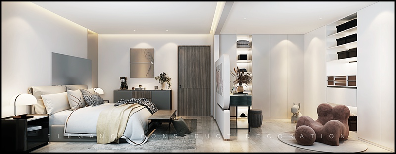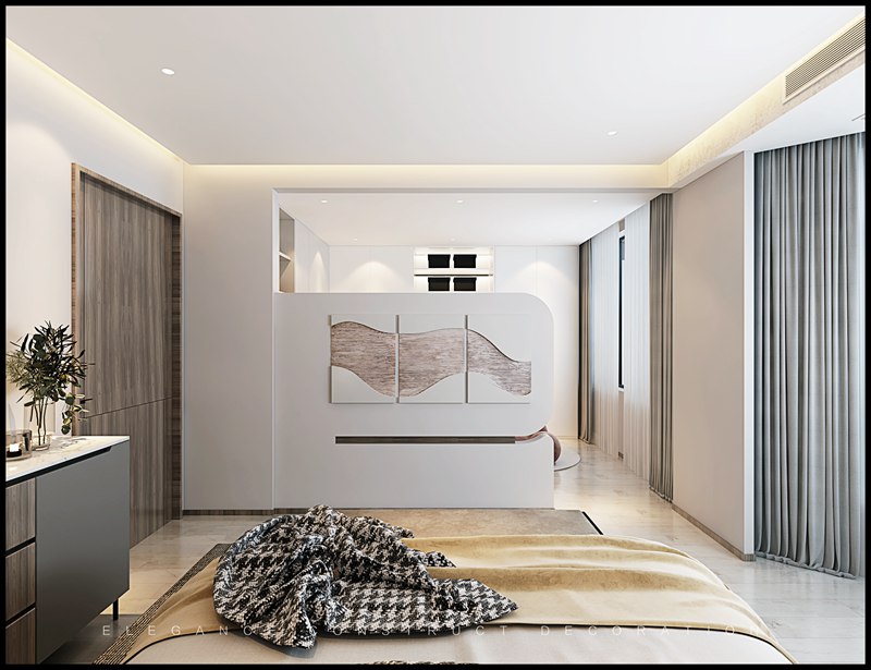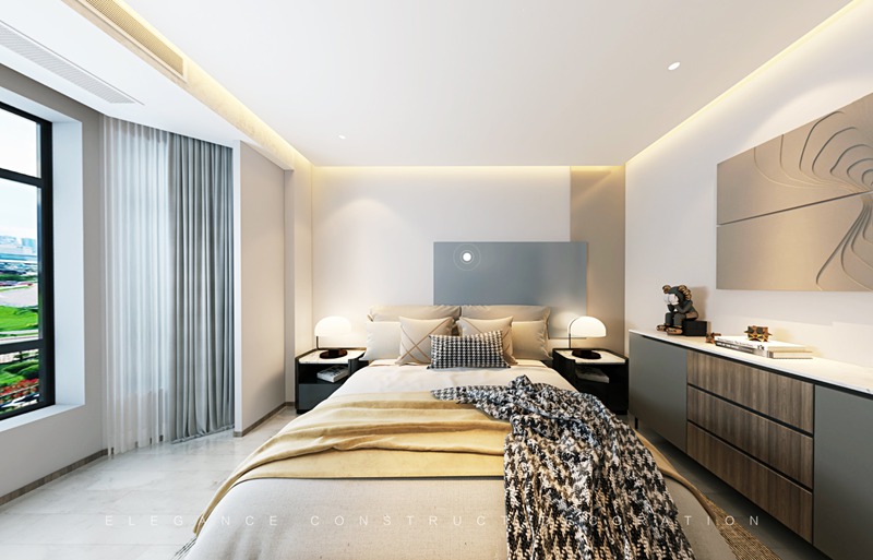 空間所散發(fā)的靜謐氣質(zhì),呈現(xiàn)一種柔和放松的氛圍。各自獨立,又“親密”交融,使光與景,無處不在的灑落于每一處,創(chuàng)造了一個舒心靜謐的純凈氛圍,在臥室空間,主人可以更好的感受光影的變化,感受四季的輪回,回歸生活的本真。
