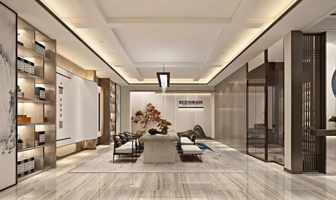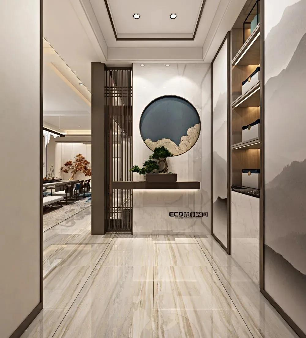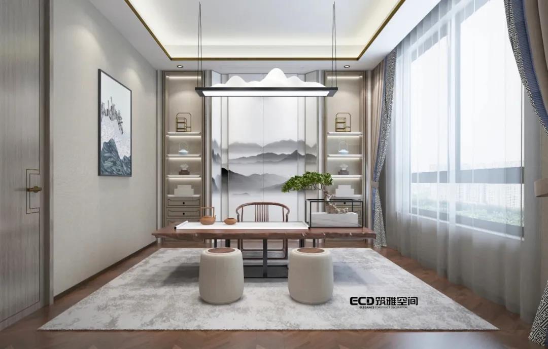 無(wú)處不山水,無(wú)處不中國(guó),無(wú)處不現(xiàn)代。山、水一直以來(lái)都是中式設(shè)計(jì)主要元素,在本案中,山水仍然是貫穿整個(gè)空間設(shè)計(jì)的靈魂,我們筑雅空間的威海裝修設(shè)計(jì)師以不同方式將山水元素符號(hào)進(jìn)行演變,通過(guò)設(shè)計(jì)來(lái)傳達(dá)現(xiàn)代中式雅致、靜謐空間氛圍。比如門廳的山景裝飾,活動(dòng)室的潑墨山水畫、書房的山水畫背景等,不同空間以不同形式來(lái)突出元素,內(nèi)化自然山水之靈,借當(dāng)代設(shè)計(jì)的手法,營(yíng)造舒緩自然、平和雅致的現(xiàn)代品質(zhì)生活儀式感。