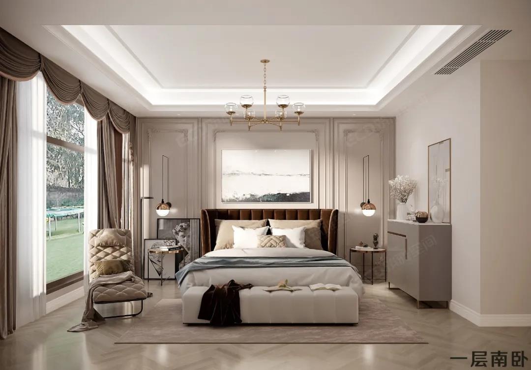 臥室凸顯著簡歐風(fēng)格的傳統(tǒng)歷史痕跡和文化風(fēng)情。門窗光線充足,臥室在陽光的照射下,充滿了輕盈的通透感,盡顯美妙的景觀優(yōu)勢。