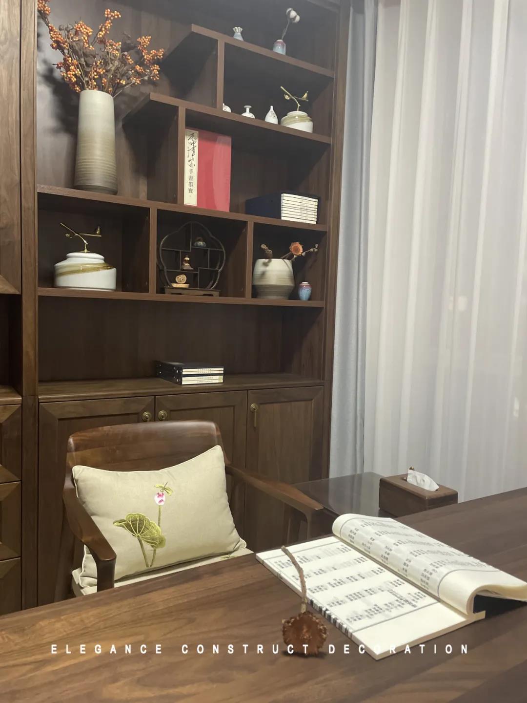 走進(jìn)書(shū)房,便被古韻古香的氛圍所感染,獨(dú)樹(shù)一幟的空間感讓書(shū)房顯得更加充滿內(nèi)涵,午后偷得浮生半日閑,沉浸在書(shū)房中,品一本愛(ài)書(shū),或精心冥思,感受光線透過(guò)紗簾在空間里自由蔓延,感受歲月靜好。