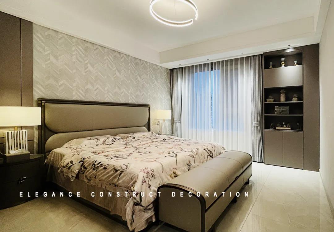 主臥延續(xù)了客廳的低飽和度配色,靜謐氛圍與現(xiàn)代摩登質(zhì)感,讓陽(yáng)光注滿室內(nèi),讓這一方私密天地中,放慢步調(diào),讓歸家的人更能感受到有的溫度。