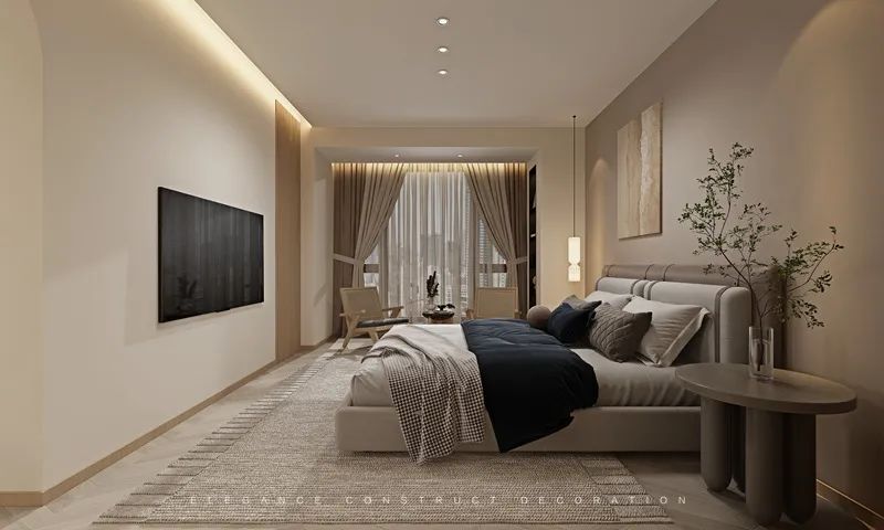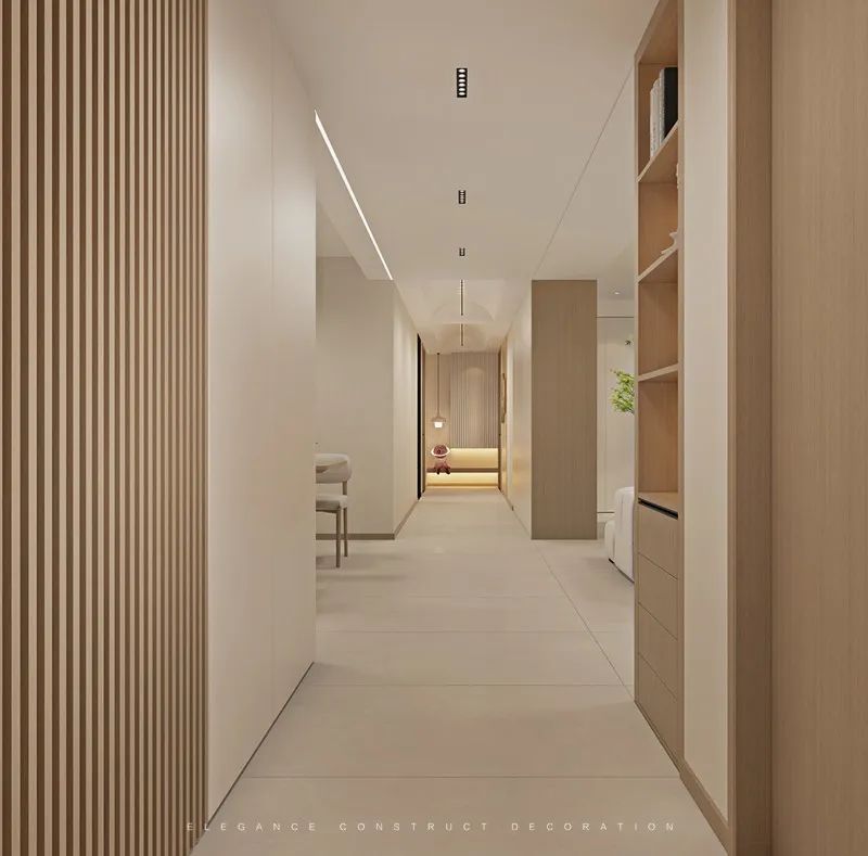 素雅清新的色調(diào)兼顧空間功能與收納,為柔和優(yōu)雅的靜態(tài)空間增添了律動感。讓人在步入空間的同時(shí),擁有溫馨舒適的感覺。