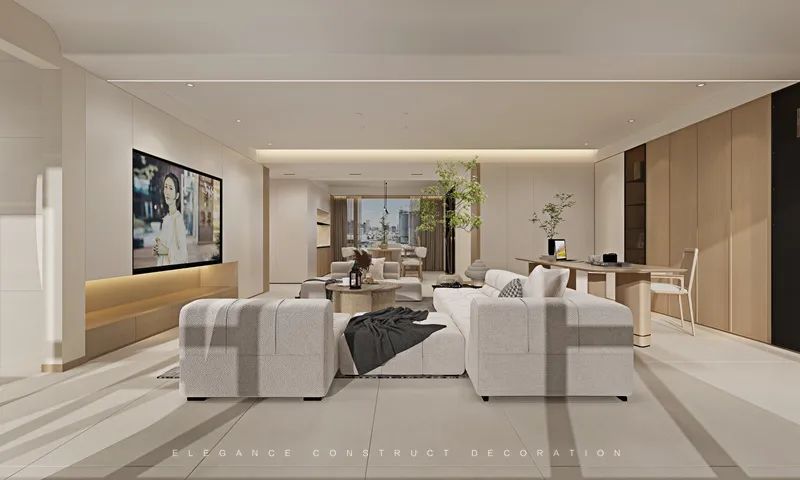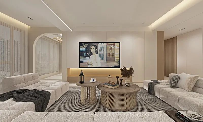 客廳是家居空間的焦點(diǎn)。身處客廳,自在從容,讓生活與時(shí)間慢下來。電視背景的處理使得線性與立體感躍然而出,讓空間更具溫雅藝術(shù)。淺灰色的沙發(fā),通過大背景的落地窗,在空間中顯得色塊明朗,層次分明。