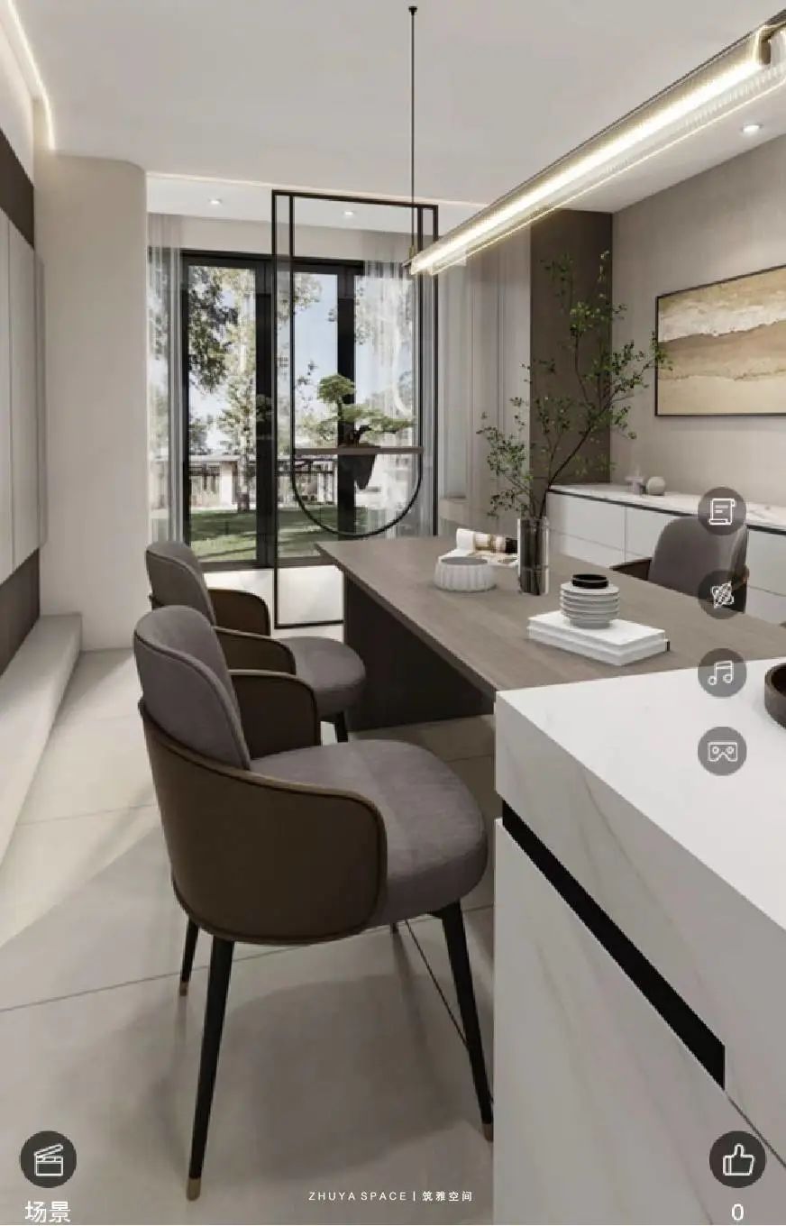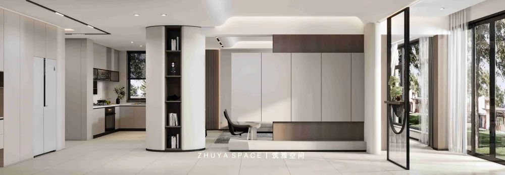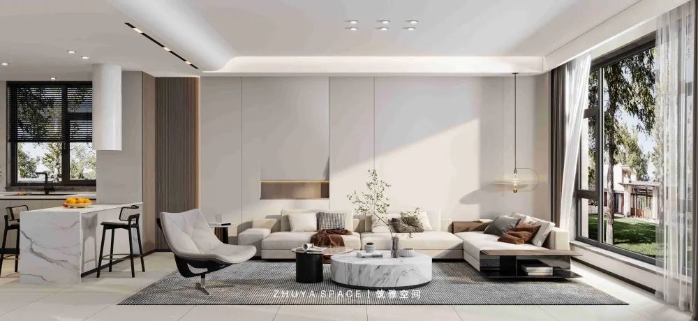 環(huán)繞的圍合感由此產(chǎn)生一種依偎式的親密關(guān)系,無論家庭聚會還是日常交流都具有自然而然的融洽氛圍。