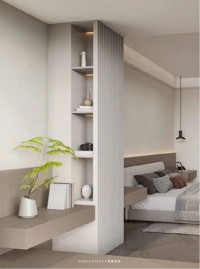 臥室延續(xù)了整體簡練的設(shè)計語言,沒有過度裝飾,溫柔色調(diào)除卻浮躁,光與空氣的鋪陳催發(fā)一種純粹明朗的舒眠氣息。