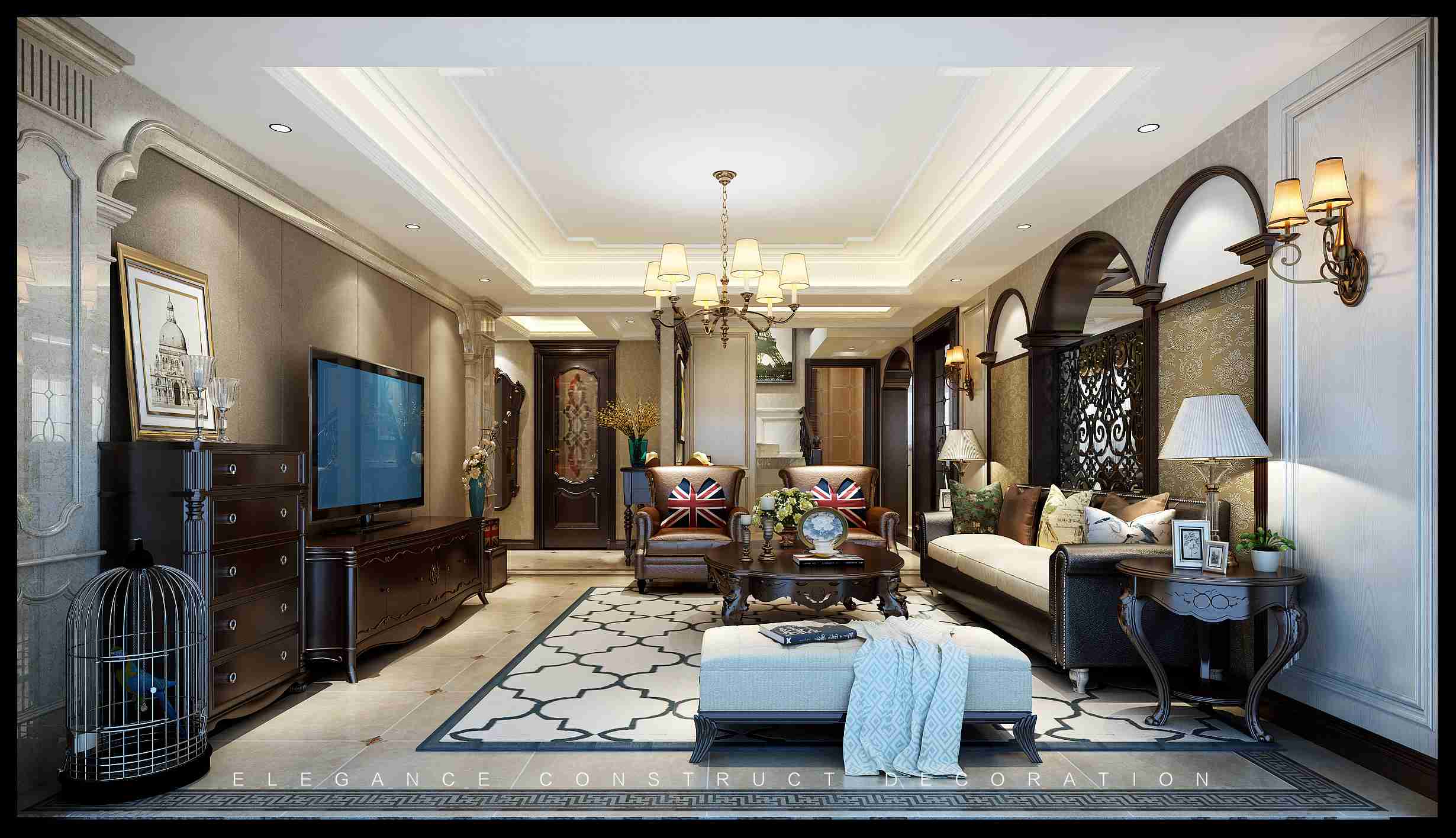 融入一些現(xiàn)代風(fēng)格在里面,在整體細(xì)節(jié)方面,根據(jù)空間布局進(jìn)行規(guī)劃的,尤其是在整體高級(jí)檔次感方面。布局上突出軸線的對(duì)稱,恢宏的氣勢(shì),豪華舒適的居住空間,細(xì)節(jié)處理上運(yùn)用雕花、線條,制作工藝精細(xì)考究。