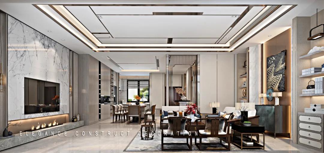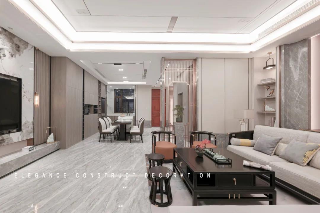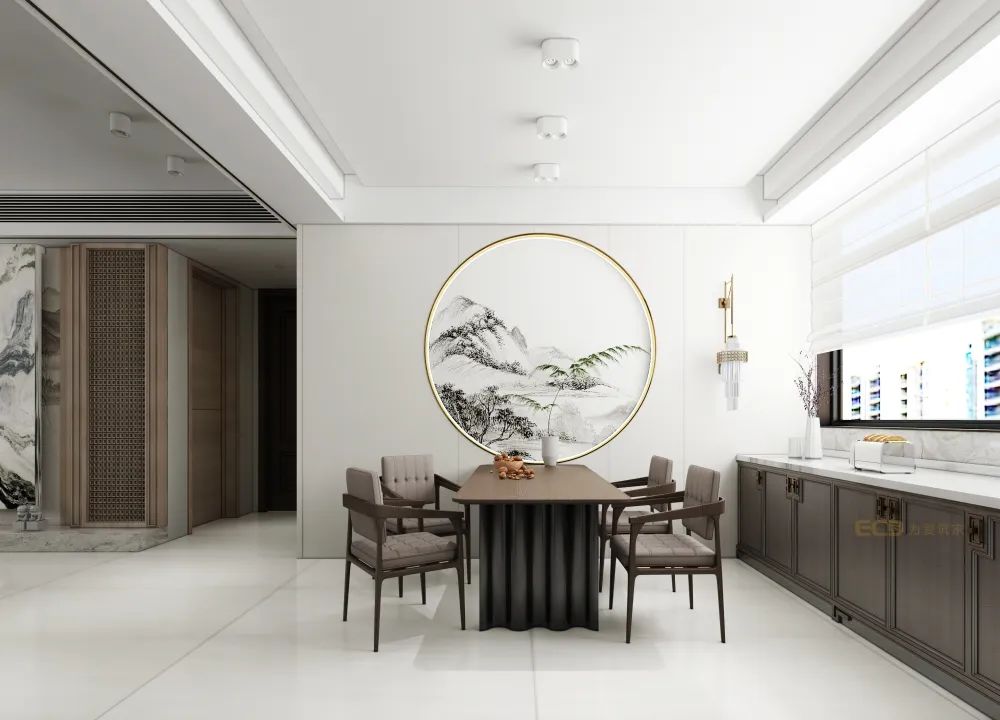 電視背景與客廳背景遙相呼應(yīng)調(diào)動(dòng)起空間的色彩層次,空間中式元素加入了靈動(dòng)氣息。