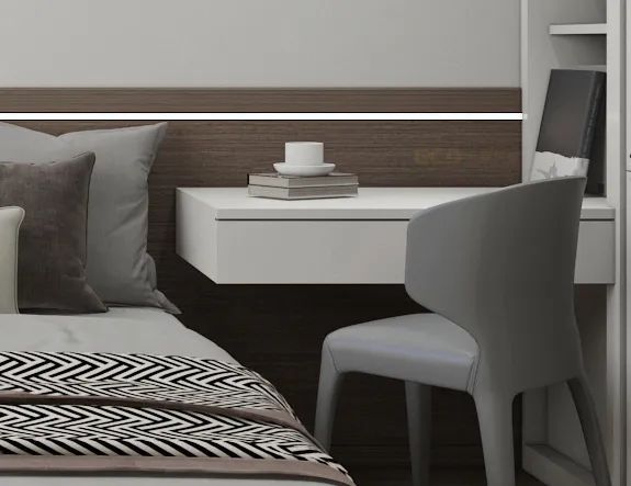 背景墻以燈帶營(yíng)造氛圍,裝飾畫與線條,喚起全屋格調(diào)。